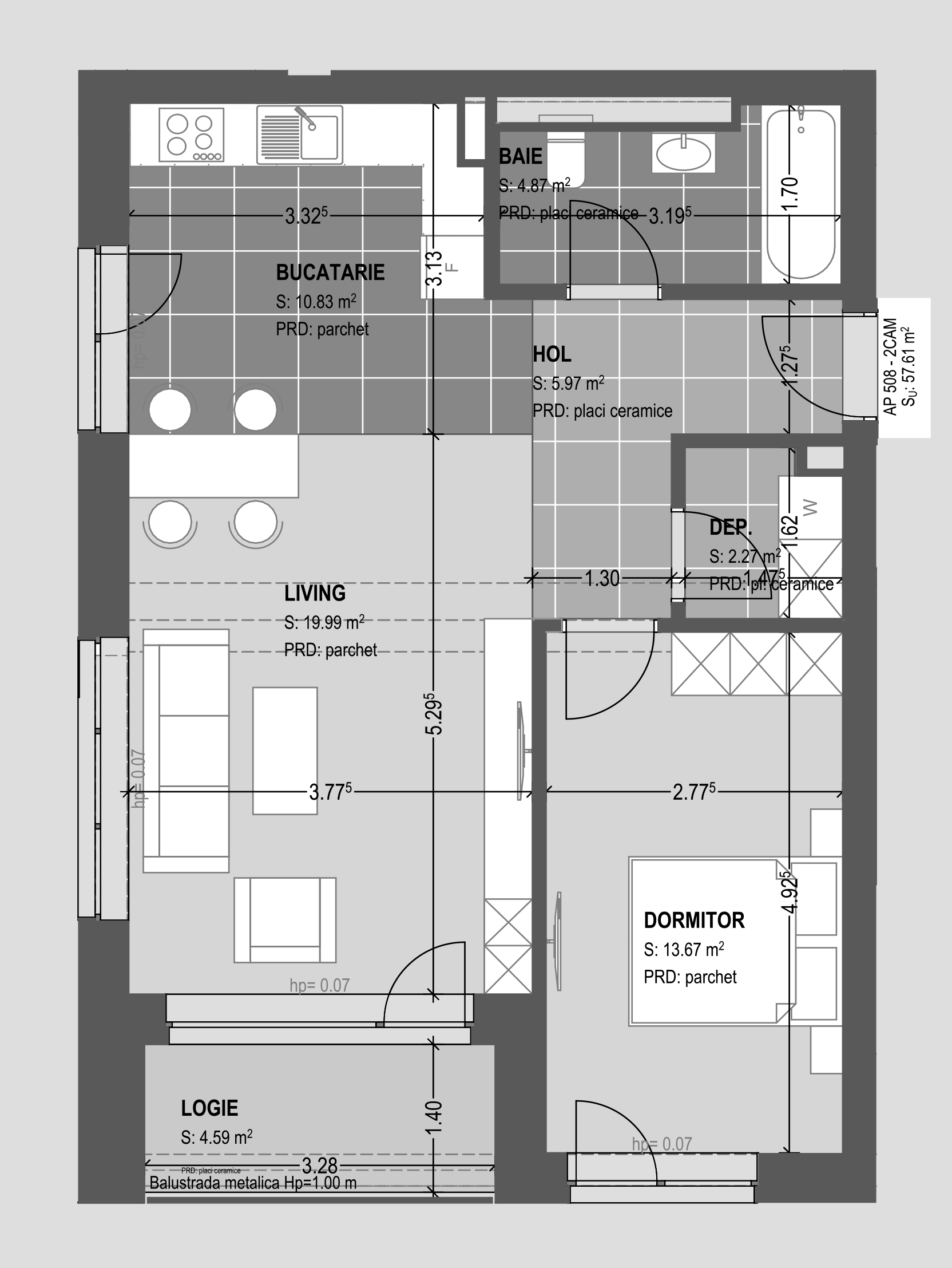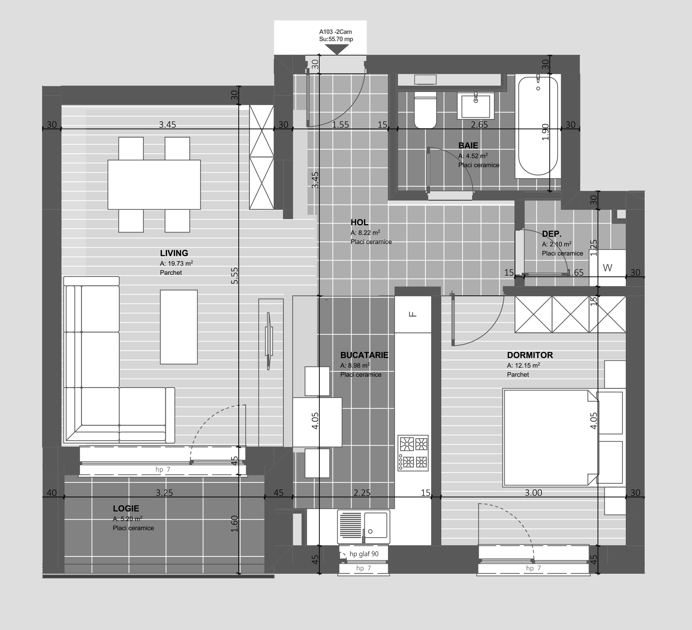 Bucătărie, living și dormitor separat, exact pe gustul tau. Alege unul dintre apartamentele noastre cu 2 camere, începând de la 55,66 m2.